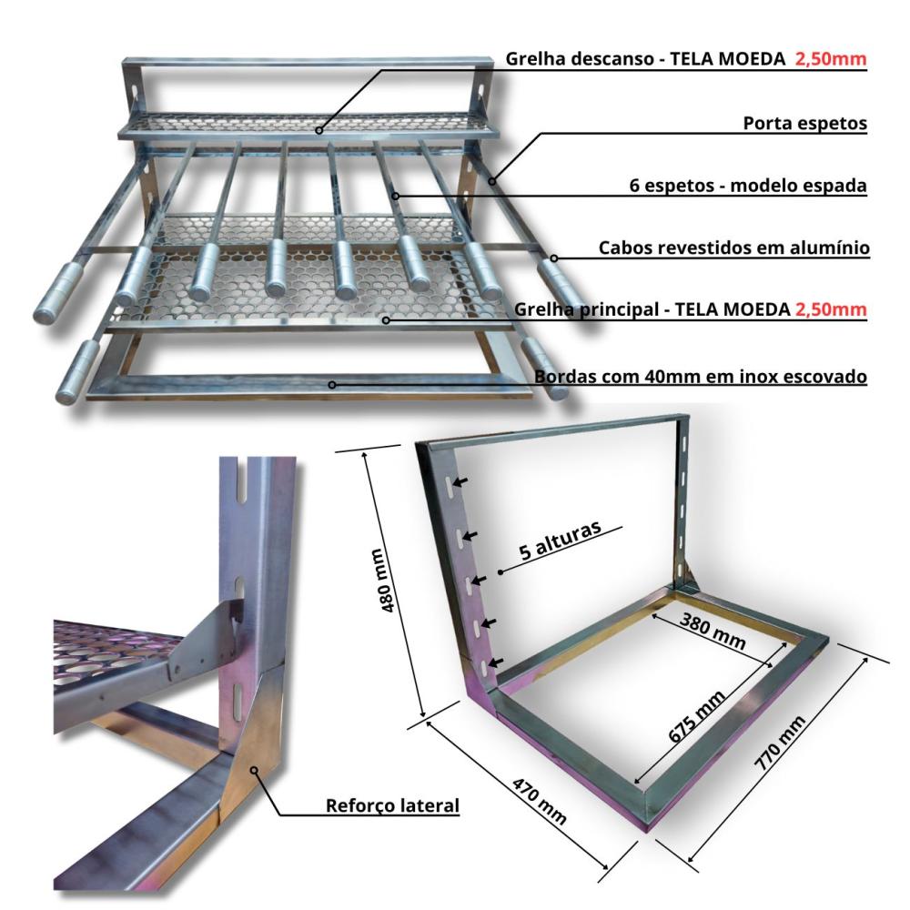 - 01 Grelha descanso aço inox 430 - tela moeda grossa (2,5mm).