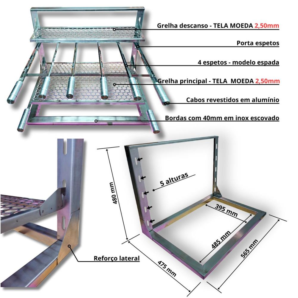 01 - Suporte flutuante de grelhas de 5 alturas com: