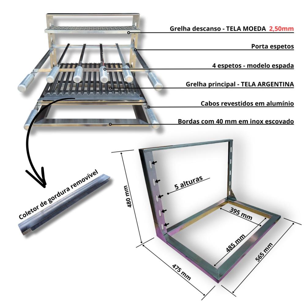 Kit Churrasqueira Gourmet Coifa 80x60 Inox Grelha Argentina