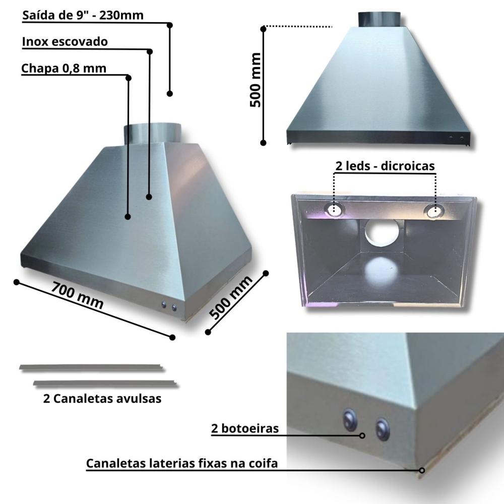01 - Coifa Inox de: 0,70x0,50 com saída de 9", (230mm).