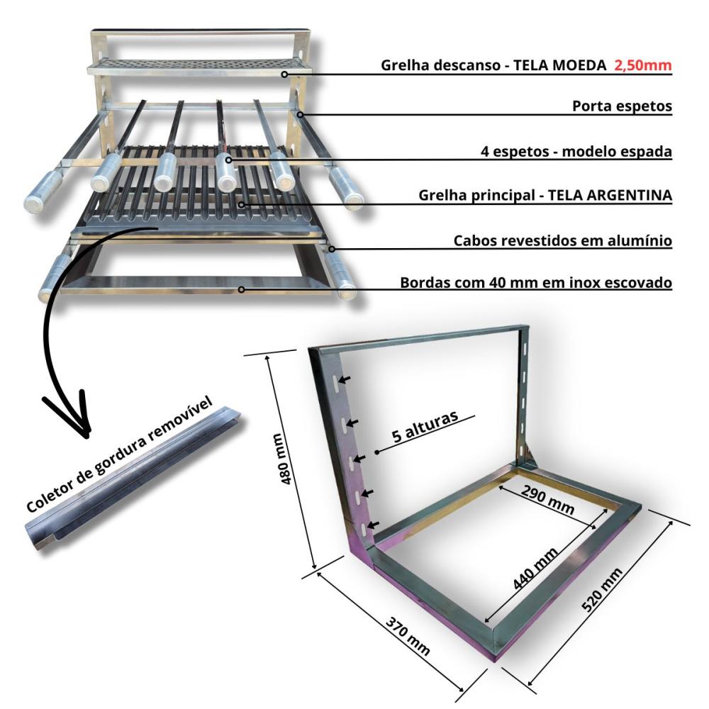 Kit Churrasqueira Gourmet Coifa 80x60 Braseiro50x40argentina