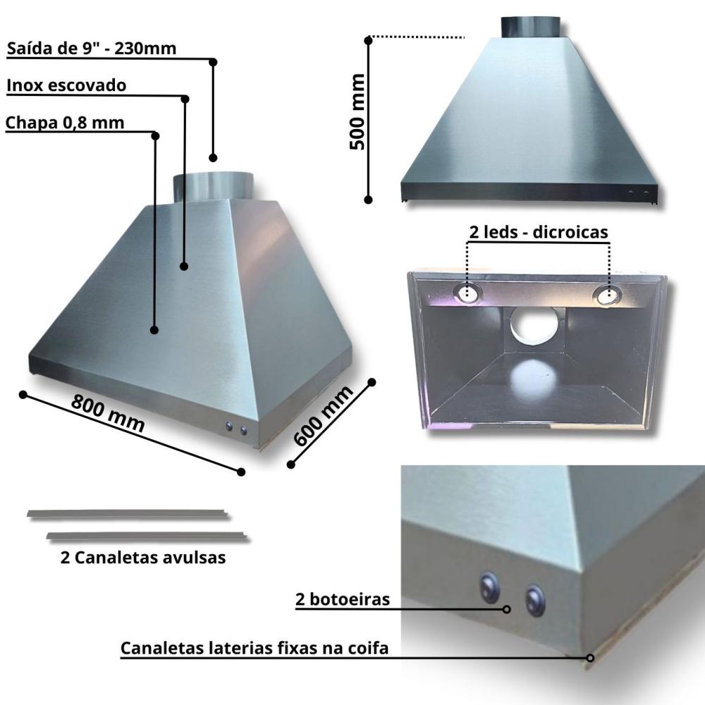 01 - Coifa Inox de: 0,80x0,60 com saída de 9", (230mm).