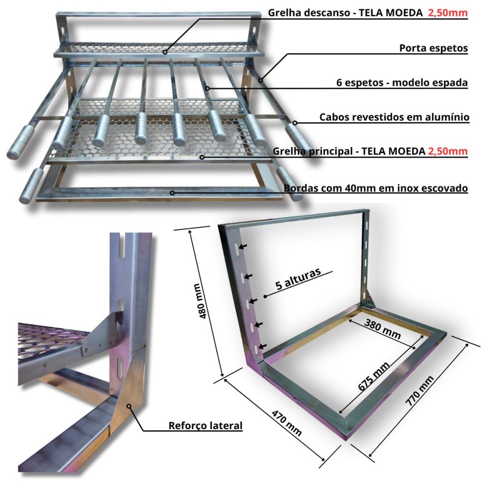 - 01 Grelha descanso aço inox 430 - tela moeda grossa (2,5mm).