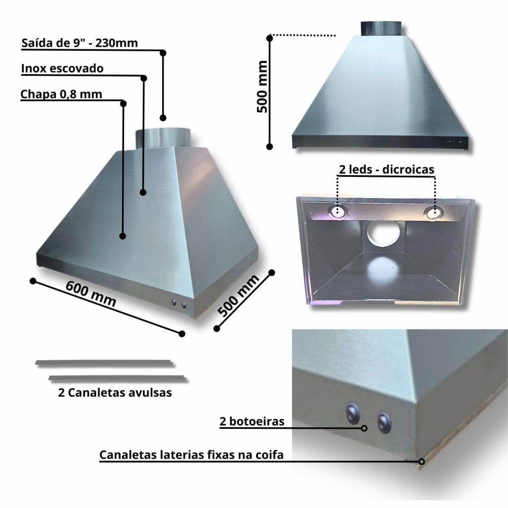 01 - Coifa INOX de: 0,60x0,50 com saída de 9", (230mm).