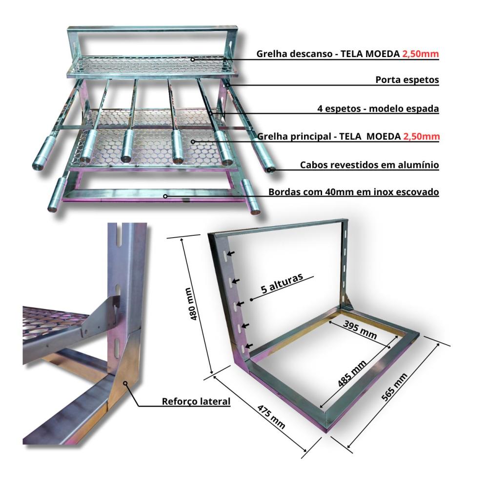 01 - Suporte flutuante de grelhas de 5 alturas com: